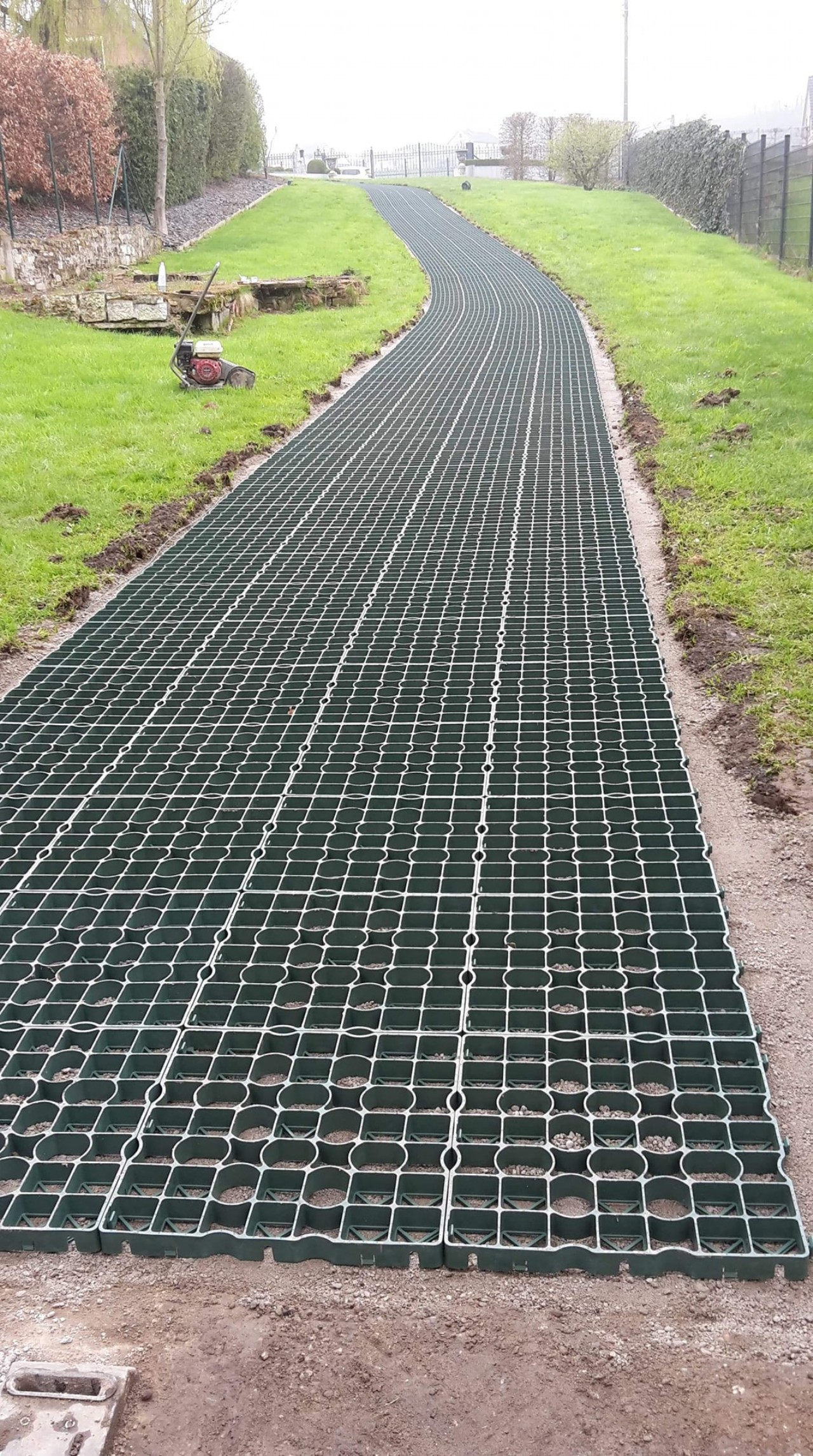 Vous souhaitez transformer un sentier ou un accès meuble afin d’assurer un passage sur une surface stable ? Nous proposons la réalisation de chemins en « nidagravel », un système unique de stabilisation de gravier. Ce système repose sur des structures alvéolaires en nid d’abeilles. La taille des alvéoles de 49 mm permet l’application d’un large choix de gravier.